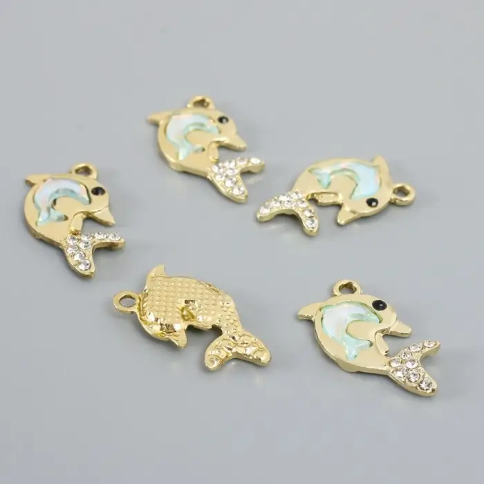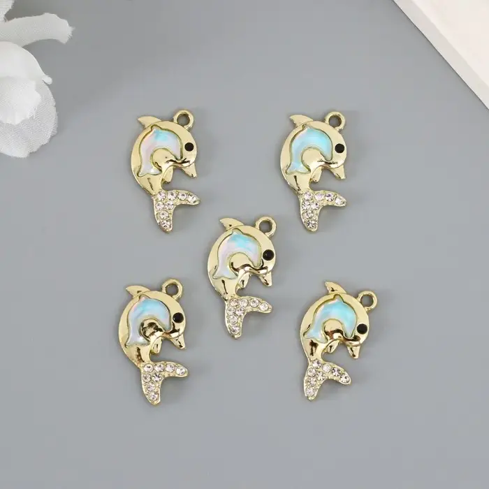 Декор для творчества металл, стразы "Двойной дельфин" голубой 2,2х2,1 см
