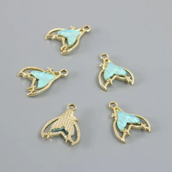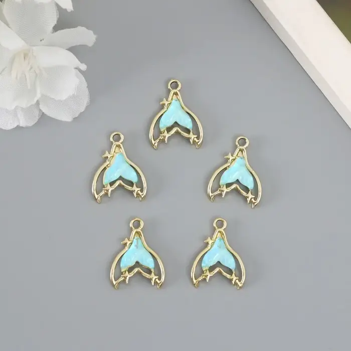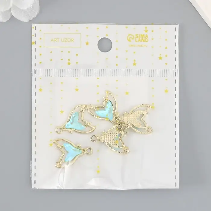 Декор для творчества металл, страз "Хвост русалки" голубой 2,1х1,6 см
