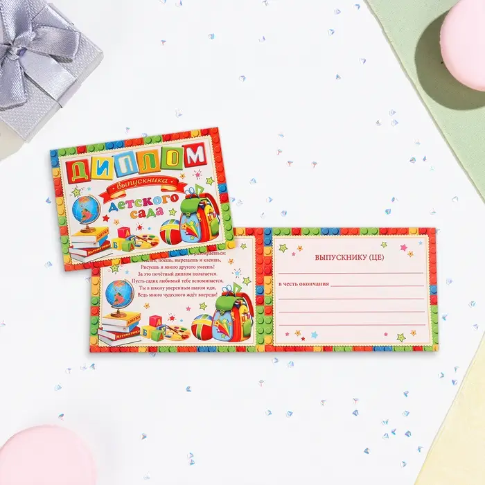 Диплом и медаль на выпускной детского сада «Дети», 21×14 см, 250 г/м²