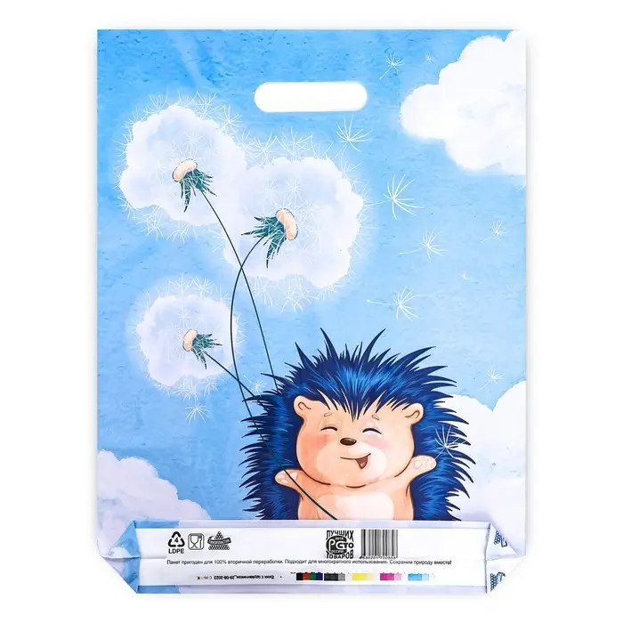 Пакет «Ежик с одуванчиком», полиэтиленовый с вырубной ручкой, 30×40 см, 60 мкм