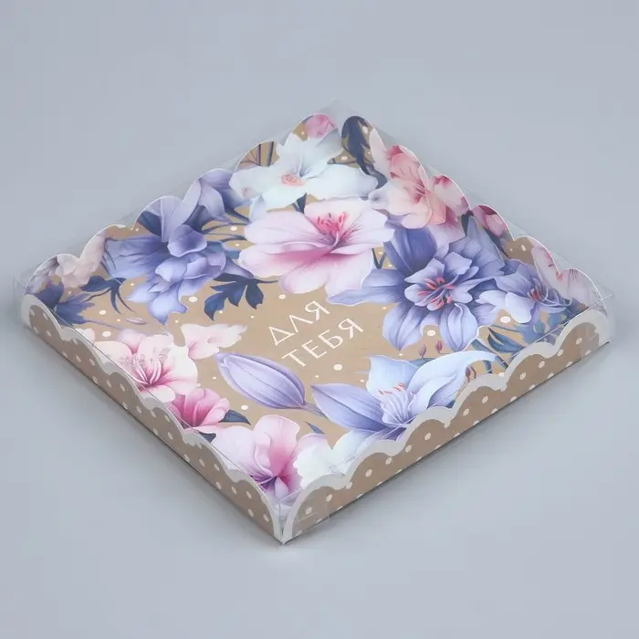Коробка для печенья, кондитерская упаковка с пластиковой крышкой, «Для тебя», 21 х 21 х 3 см