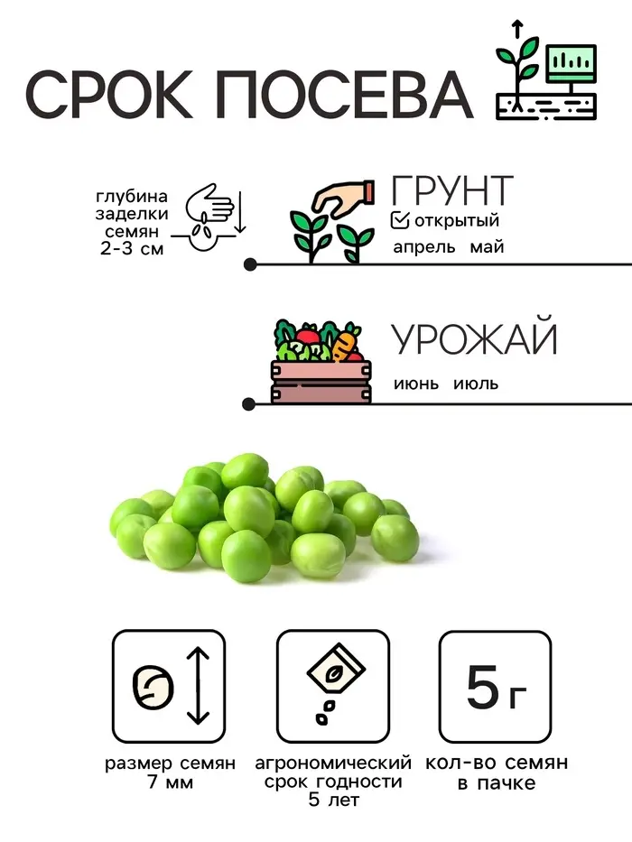 Семена Горох сахарный "Детский", 5 г