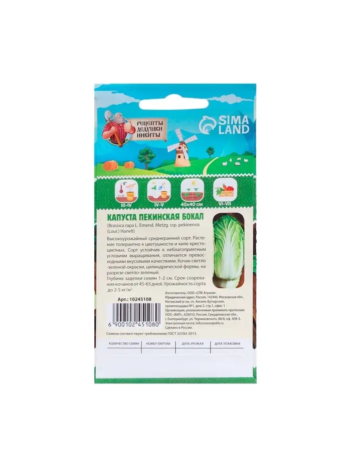 Семена Капуста пекинская "Бокал", 0,5 г - Агротехника