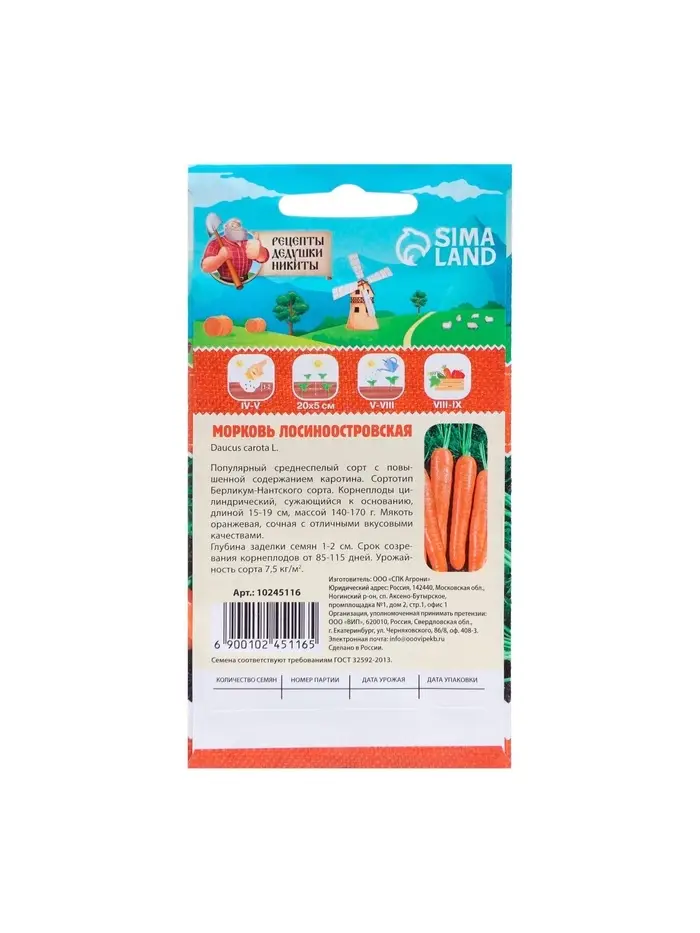 — Цвет: Ярко-оранжевый, с насыщенным оттенком, что делает морковь "Лосиноостровская 13" особенно привлекательной на столе.