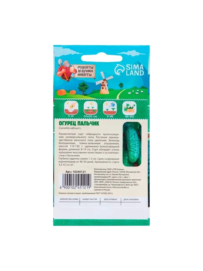 Семена Огурец "Пальчик", 0.5 г
