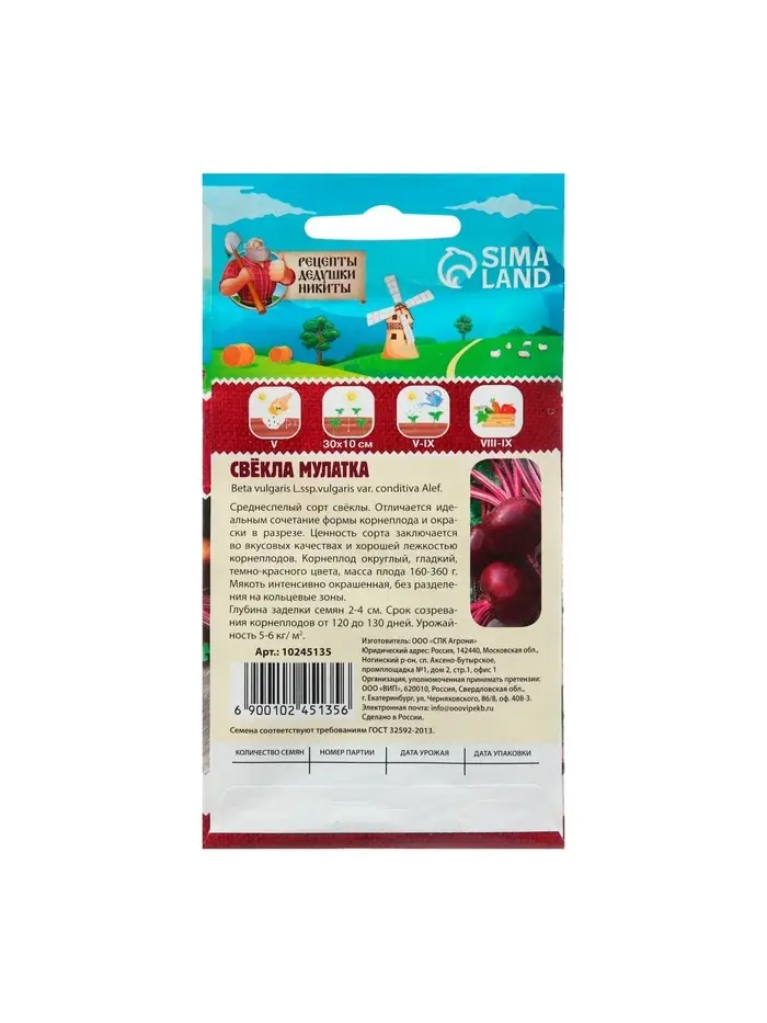 — Цвет:Красно-фиолетовый, с характерным блестящим оттенком, который делает свёклу "Мулатка" особенно привлекательной на столе.