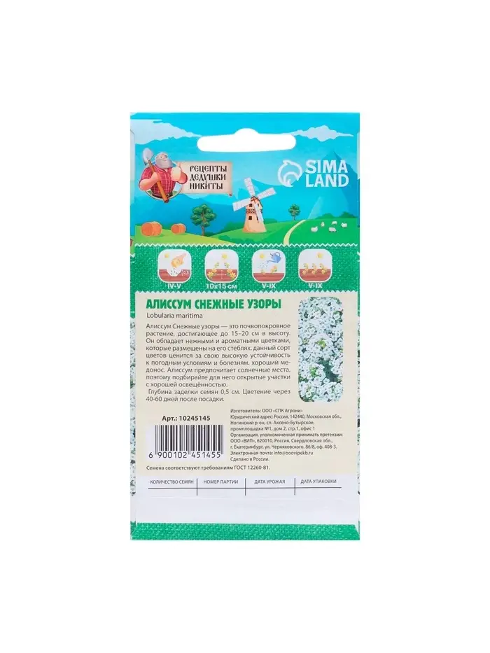 Семена цветов Алиссум "Снежные узоры", 5 шт.