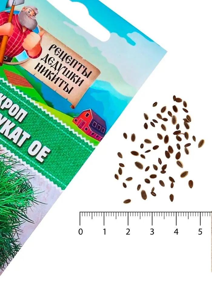 —Размер или масса плода: Укроп не образует плодов в привычном понимании, но его семена имеют характерный округлый вид, диаметром около 3-5 мм.