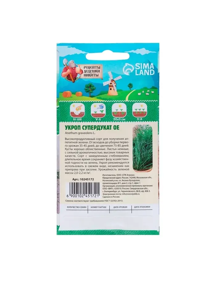 Укроп "Супердукат ОЕ" — это высокоурожайный сорт, который порадует вас нежными зелеными листьями и насыщенным ароматом. Он отлично подходит для использования в кулинарии, добавляя свежесть и пикантность в салаты, супы и маринады. Этот укроп легко выращивать, а его пышные кустики станут настоящим украшением вашего огорода.