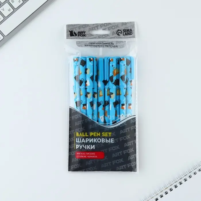 Ручка шариковая, синяя паста 0.7 мм «Котики»