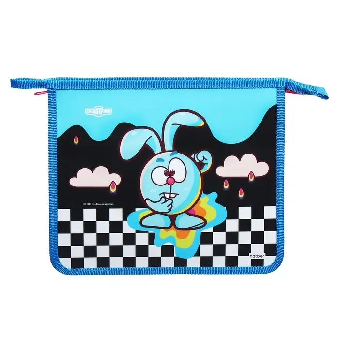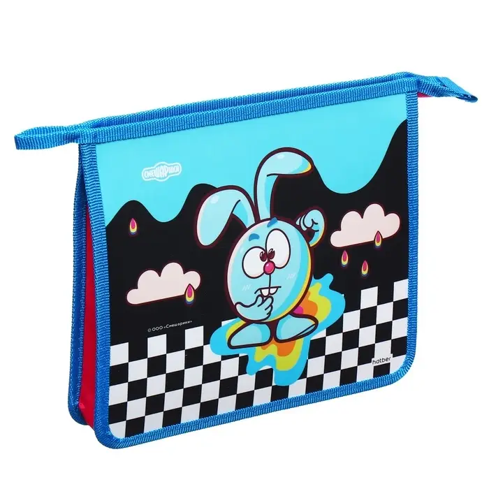 Папка для тетрадей А5, 205 х 240 х 40 мм, молния сверху, пластик/текстиль, Hatber "Смешарики Крош"