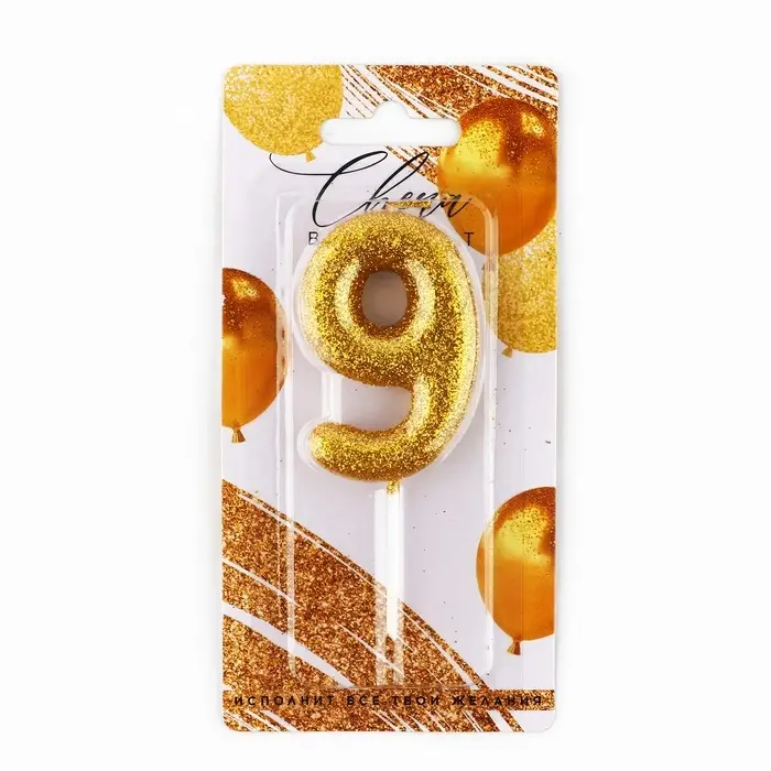 Свеча для торта, цифра, блестящая «9», золото, 9,5 х 4 см