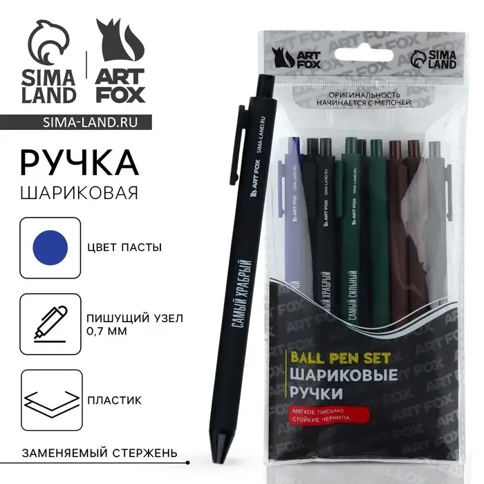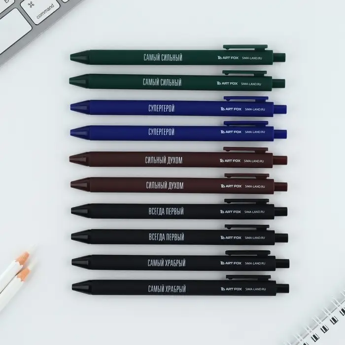 Ручка прикол шариковая синяя паста автоматическая 0,7 мм МИКС надписей «Самый сильный»
