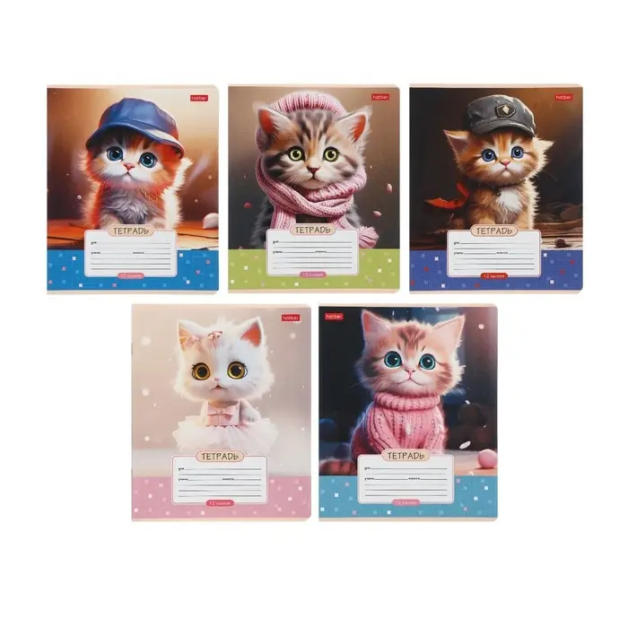 Тетрадь 12 листов в клетку на скрепке "Мы котики!", МИКС