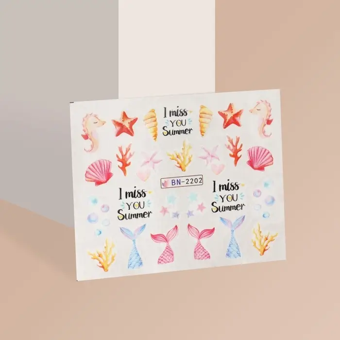 Каждая наклейка выполнена из качественного пластика и бумаги, что обеспечивает лёгкость в нанесении и стойкость рисунка. Морская тематика и изображения животных добавляют нотки приключений и свежести в ваш маникюр, идеально подходя как для летних дней, так и для праздников. Эти слайдеры не требуют особых температурных условий, что делает их удобными в использовании в любое время года.