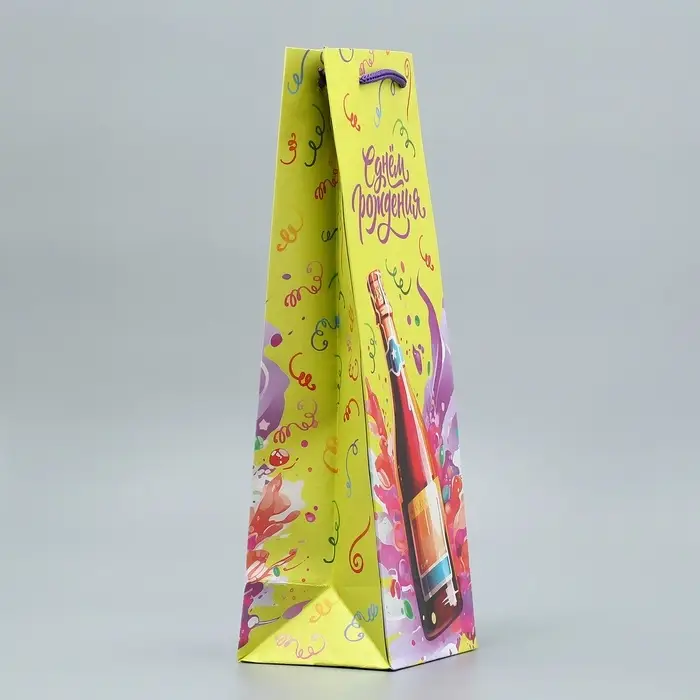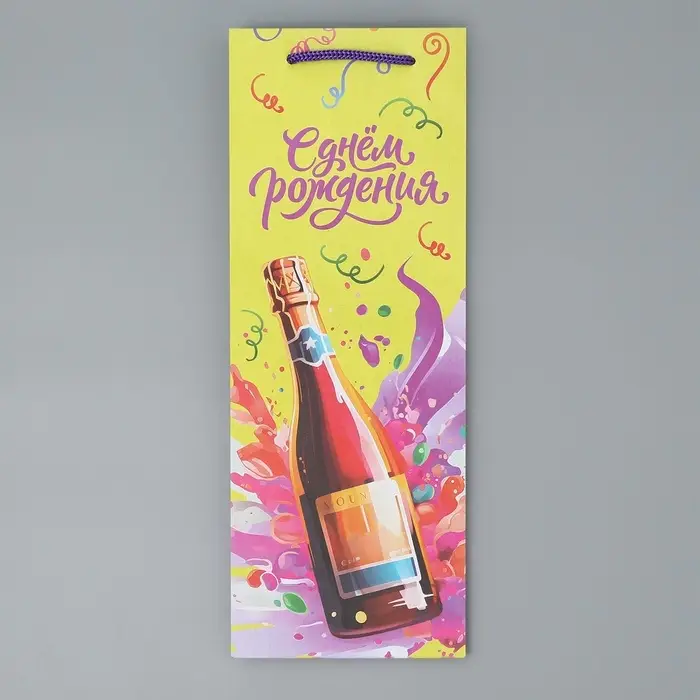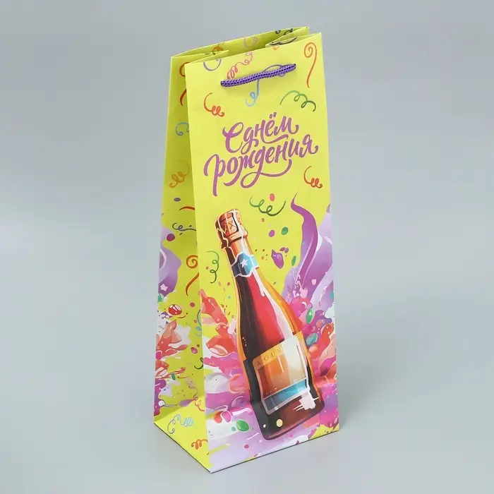 Пакет подарочный под бутылку, упаковка, «День рождения», 36 х 13 х 10 см