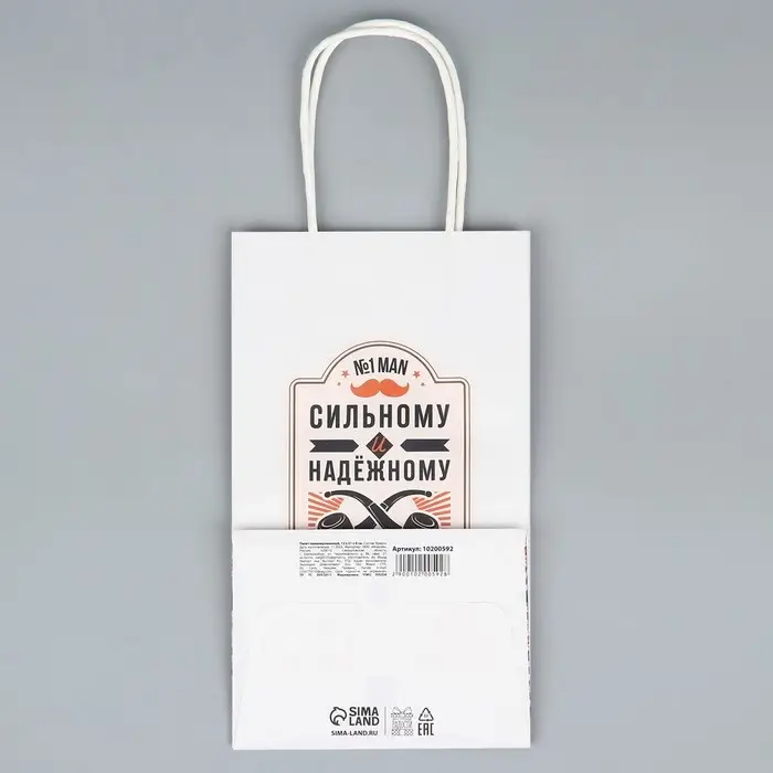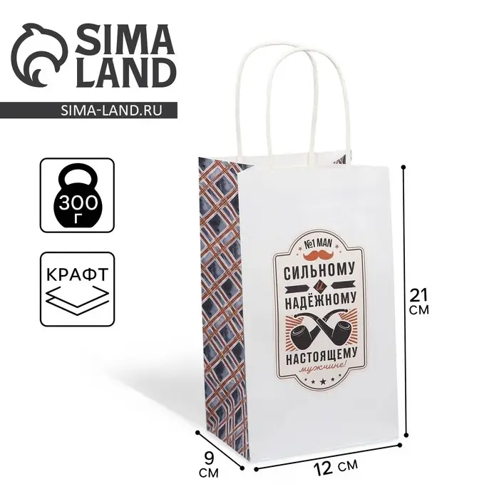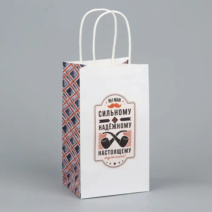 Пакет подарочный крафтовый, упаковка, «Настоящему мужчине», 12 х 21 х 9 см