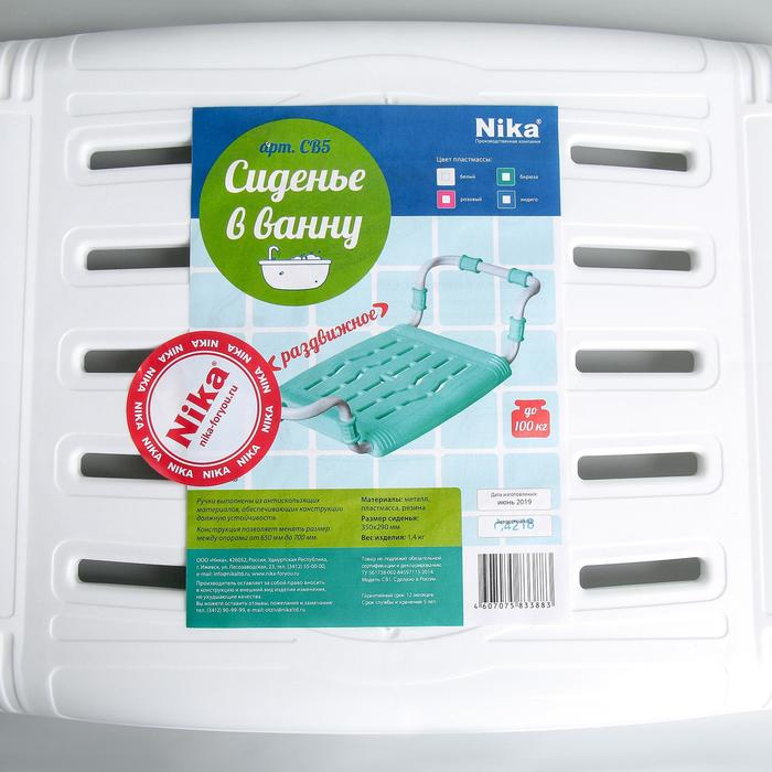 Сиденье для ванны раздвижное, 35×29 см, цвет белый