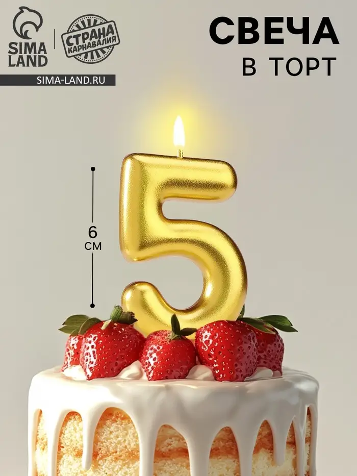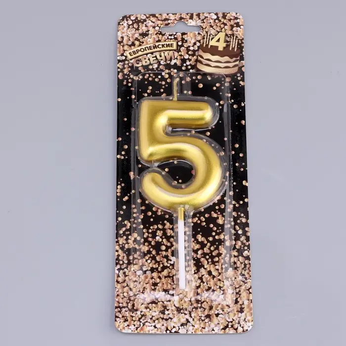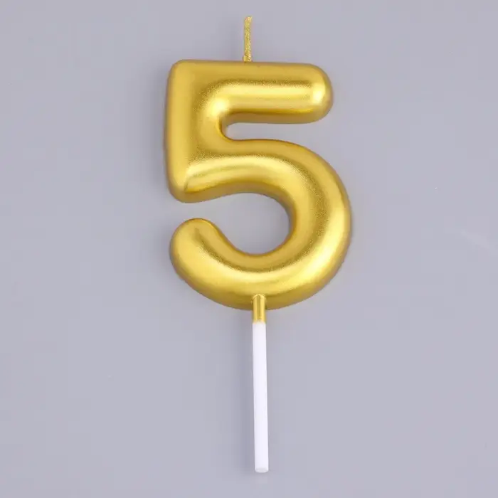 Свеча в торт «Европейская», цифра 5, 6 см, золото