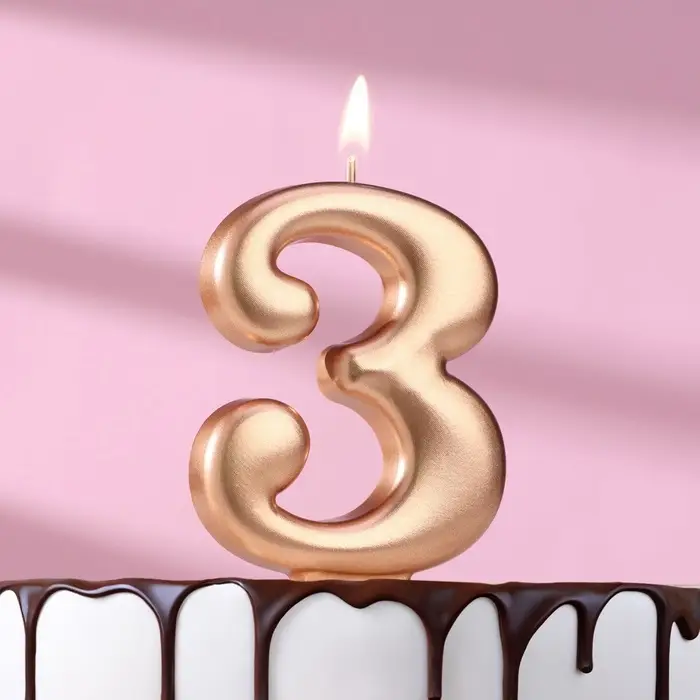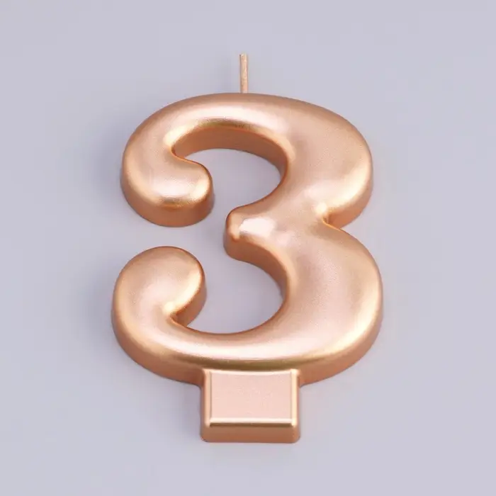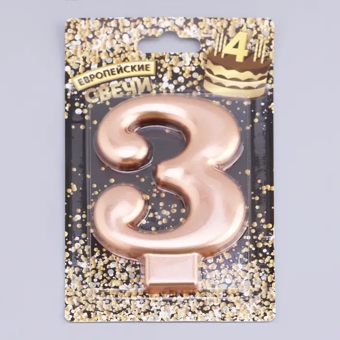 Свеча для торта «Европейская ГИГАНТ», цифра 3, 7 см, розовое золото