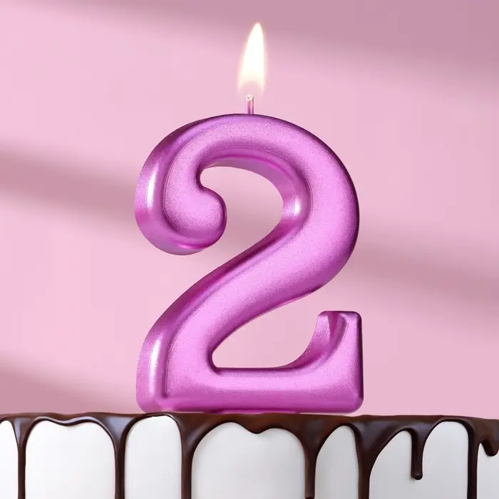 Свеча для торта "Лёд", цифра "2, сиреневая