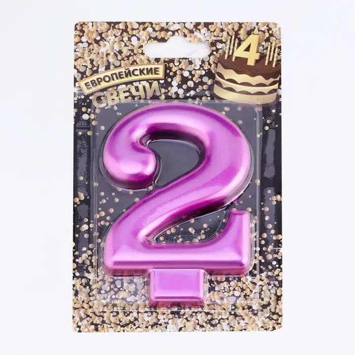 Свеча для торта «Европейская ГИГАНТ», цифра 2, 7 см, фиолетовый металлик