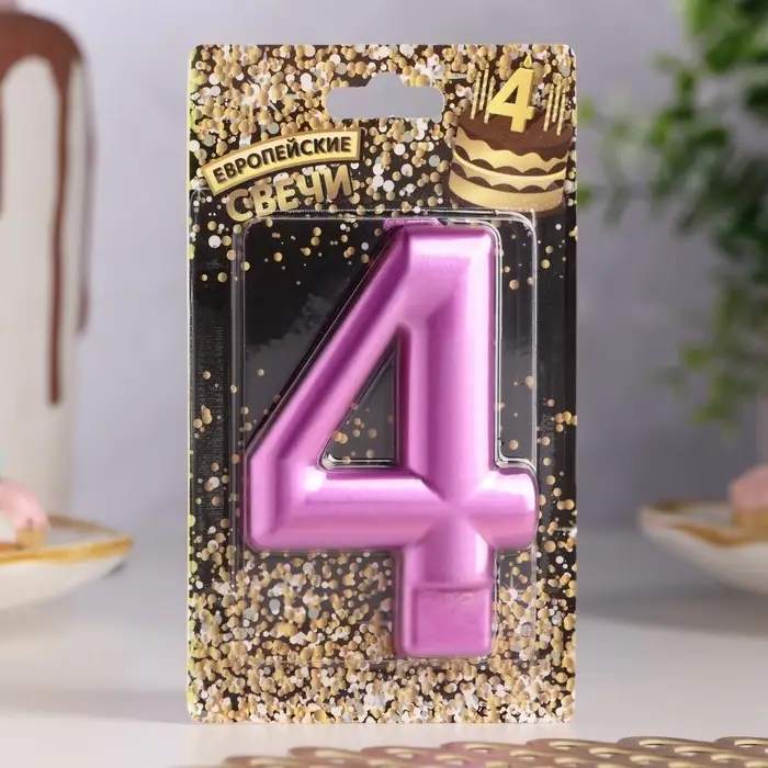 Свеча для торта «Европейская ГИГАНТ», цифра 4, 7 см, фиолетовый металлик