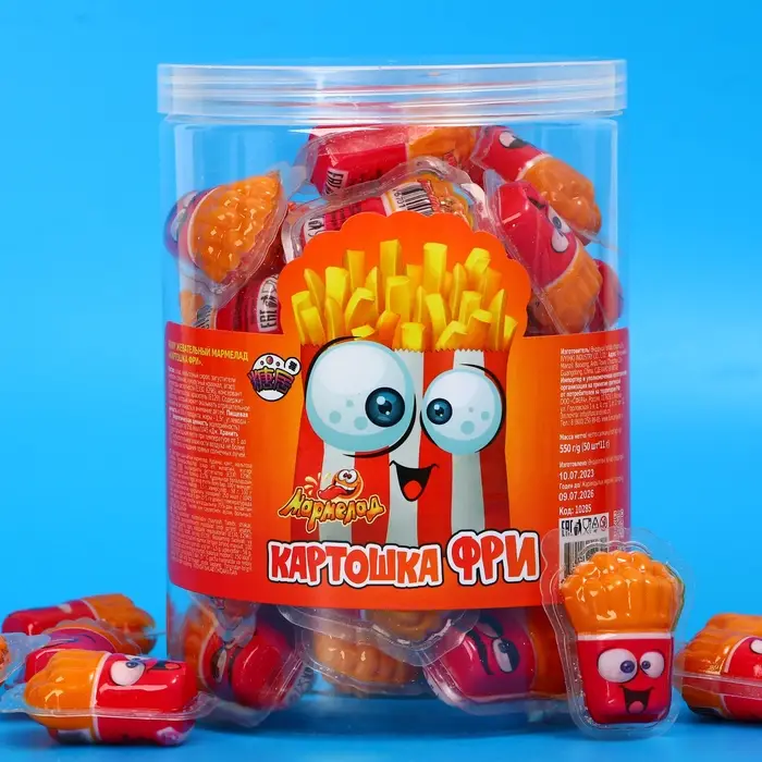 Подарите себе и своим друзьям улыбку и веселье с жевательным мармеладом «Картошка фри» — это необычное и вкусное угощение, которое добавит ярких красок в вашу жизнь!