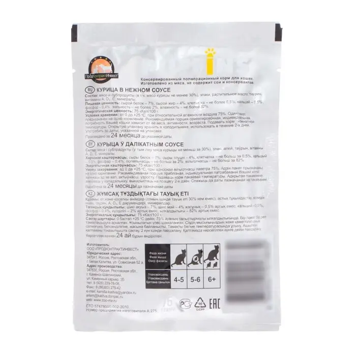 Влажный корм "Puffins" для кошек, курица в соусе, 75 г
