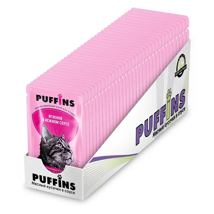 Влажный корм "Puffins" для кошек, ягненок в соусе, 75 г