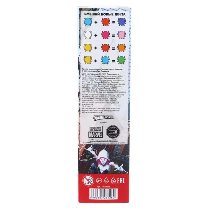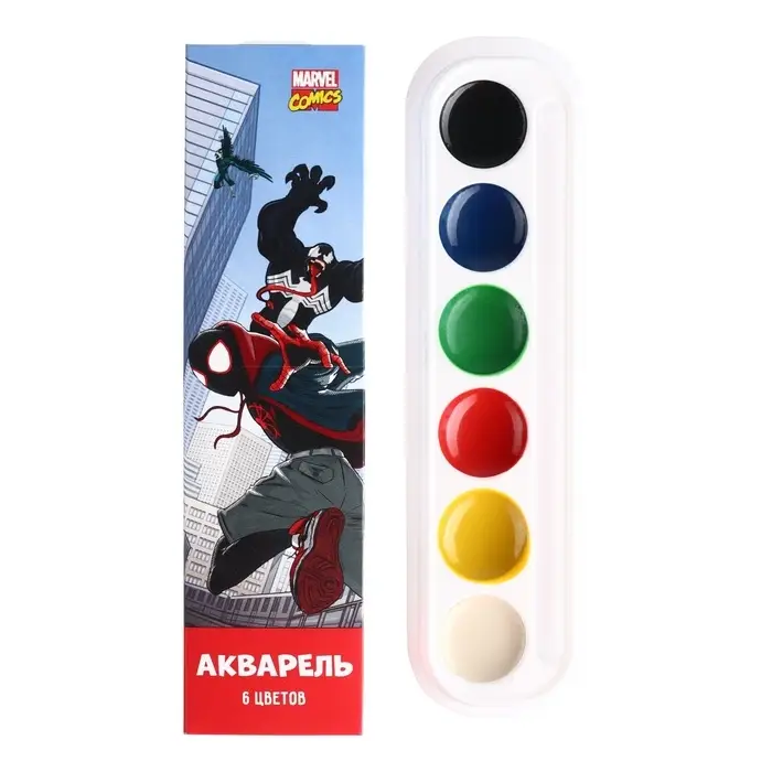 Акварель медовая «Человек-паук», 6 цветов, в картонной коробке, без кисти