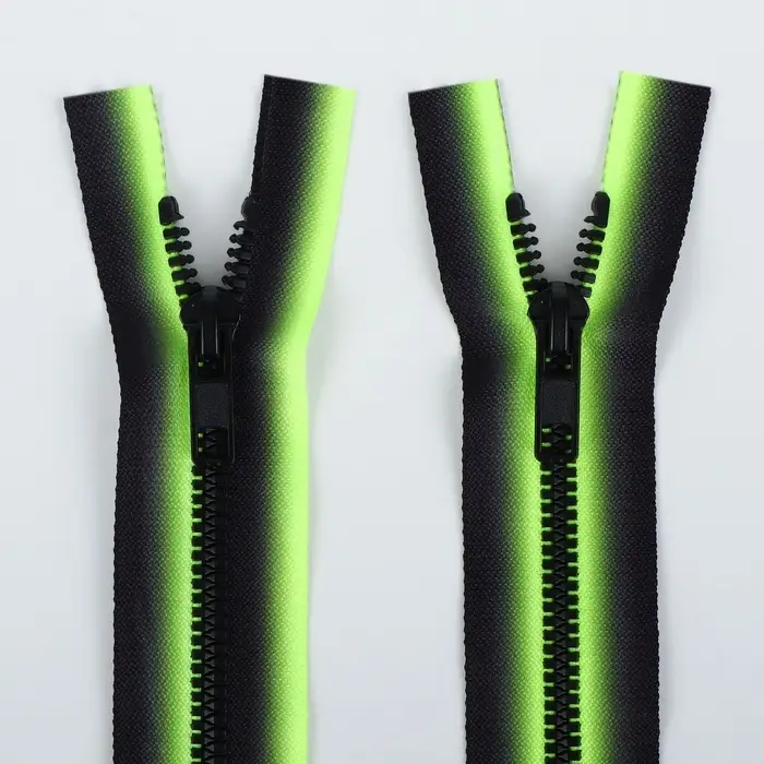 Пластиковые зубцы не истираются. Конструкция износостойкая, не выцветает. Бегунок плавно скользит по застёжке.