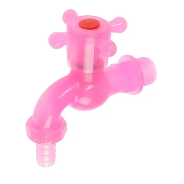 Кран водоразборный ZEIN, 1/2", со штуцером, с крестовой ручкой, PP, розовый