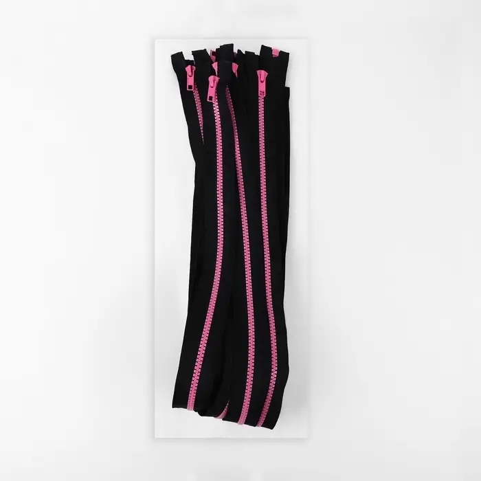 Молния «Трактор», №5, разъёмная, замок автомат, 60 см, чёрная, розовая