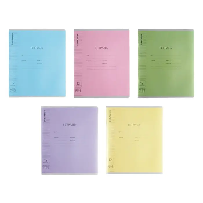 Тетрадь 12 листов в узкую линейку, ErichKrause "Классика CoverPrо", пластиковая обложка, блок офсет 100% белизна, МИКС, цена за 1 штуку