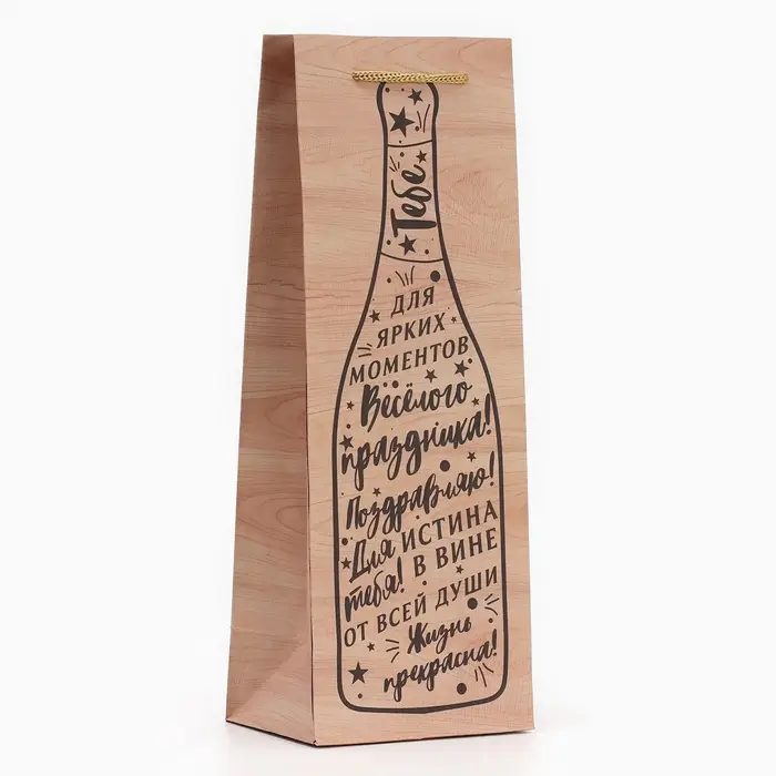Пакет подарочный под бутылку, упаковка, «Истина в вине», 36 х 13 х 10 см