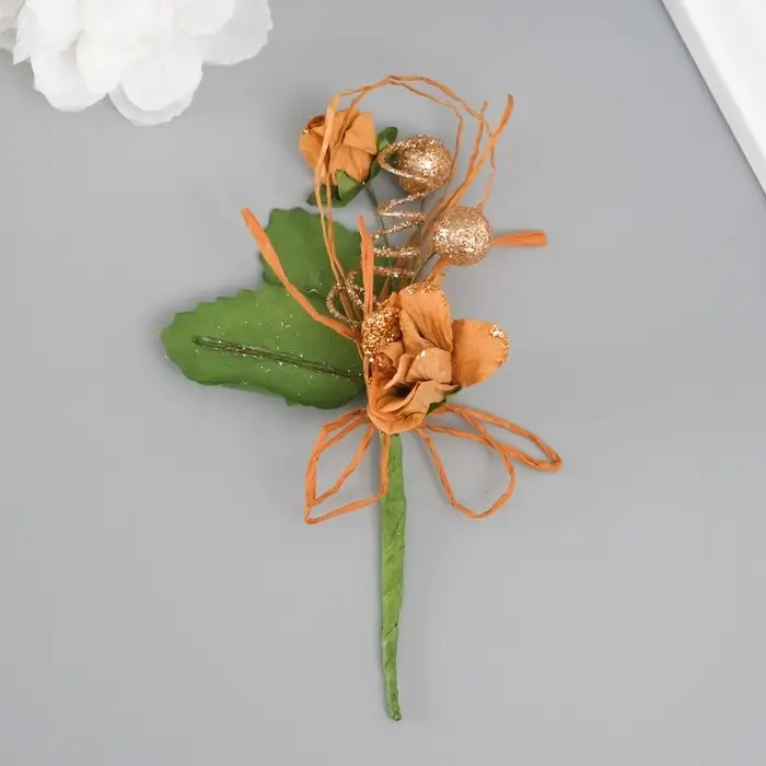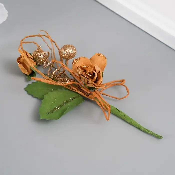 Букет декоративный "Розочка" с блеском, 5х9 см, бежевый