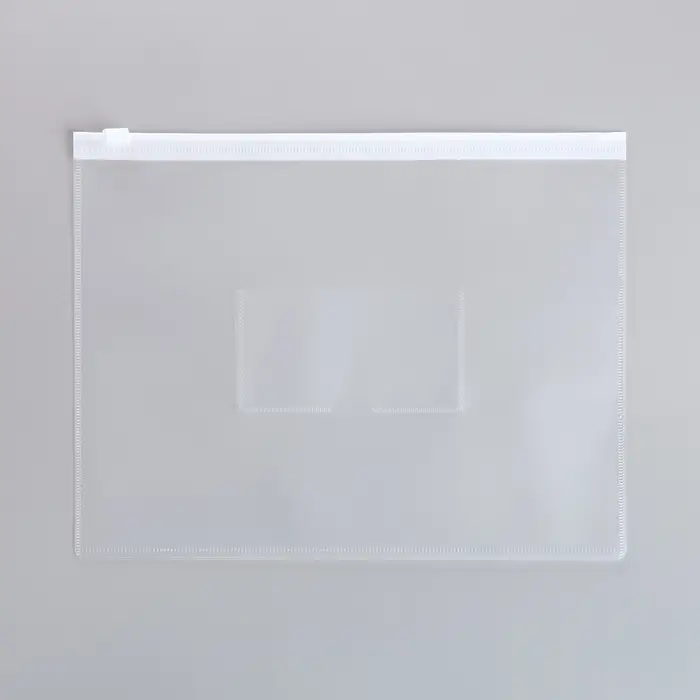 Папка-конверт на ZIP-молнии A5, 150 мкм, Calligrata, карман для визитки, прозрачная, белая молния