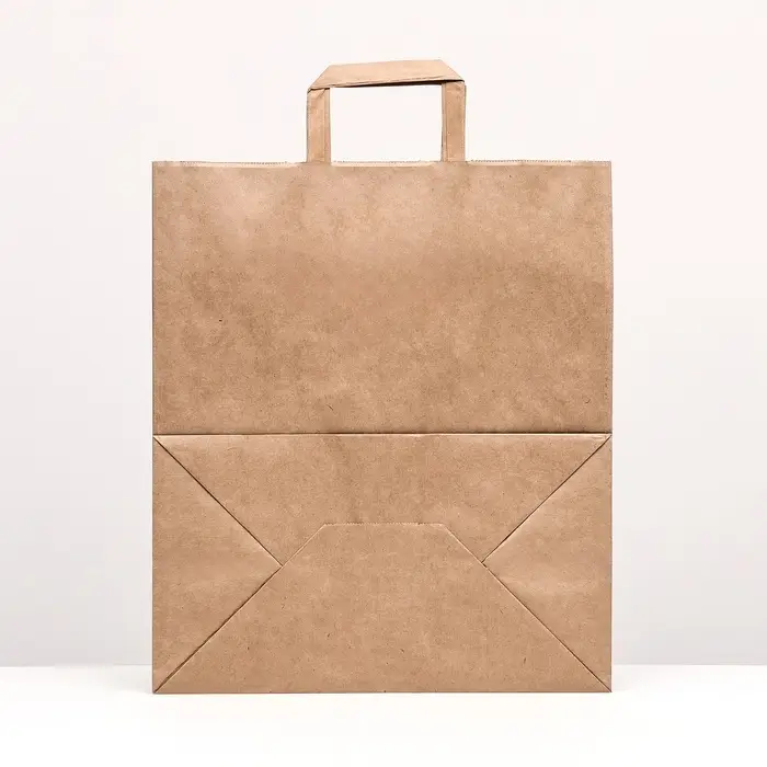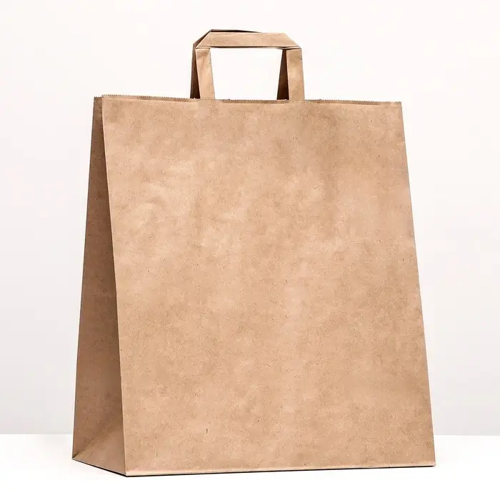 Пакет крафт с плоской ручкой - это стильный и экологичный аксессуар, который сочетает в себе функциональность и эстетику.
