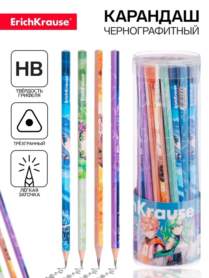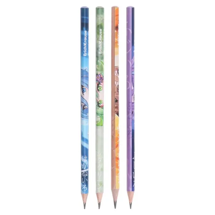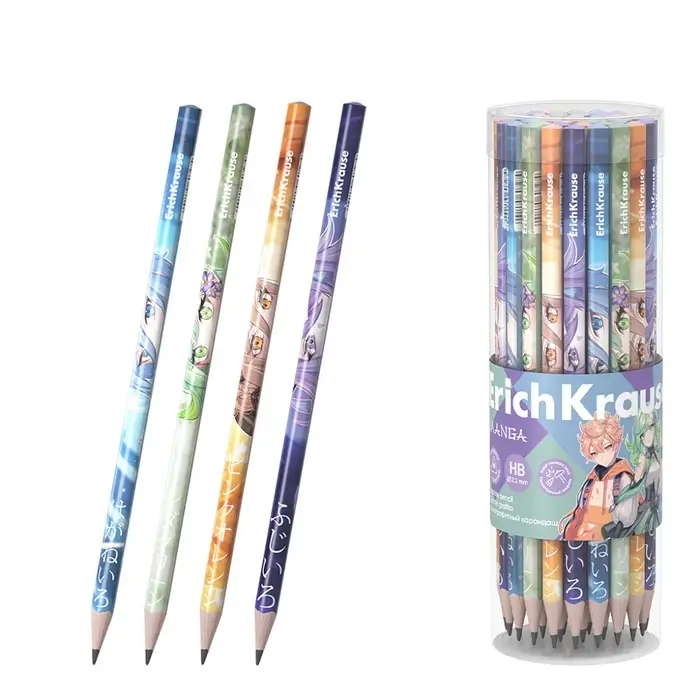 Карандаш чернографитный ErichKrause "Manga", НВ, грифель d=2,2 мм, дерево, трехгранный, в тубусе, микс