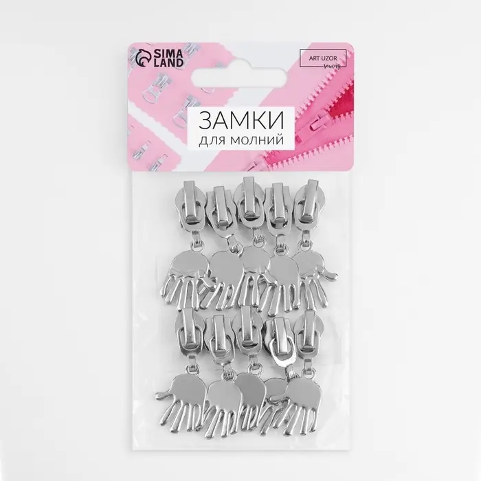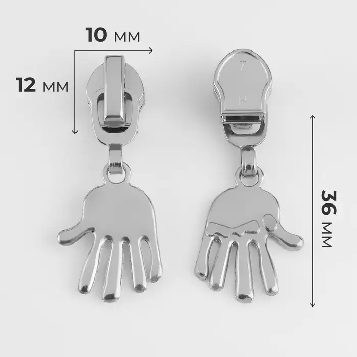 Бегунок для молнии «Спираль», №7, «Ладонь», 10 шт., цвет никель