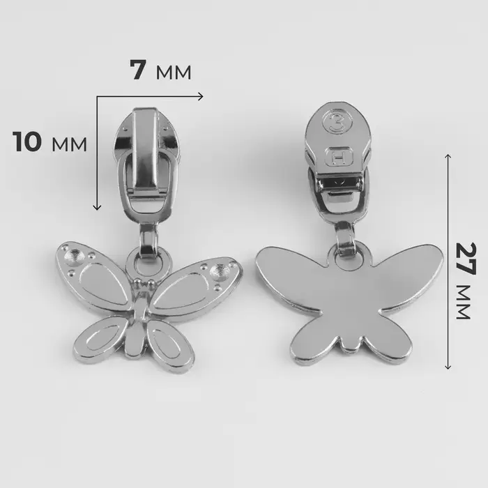 Бегунок для молнии «Спираль», №3, «Бабочка», 10 шт., цвет никель
