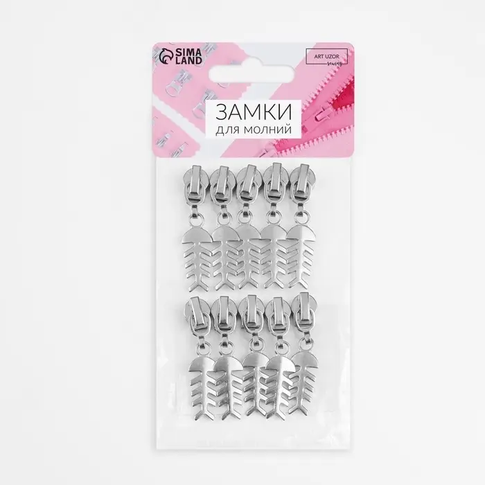 Бегунок для молнии «Спираль», №5, «Рыба», 10 шт., цвет никель
