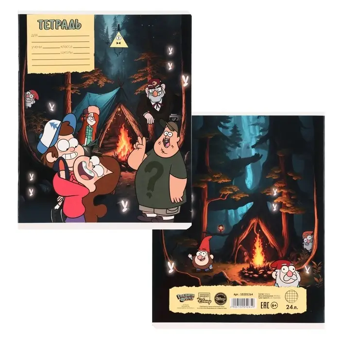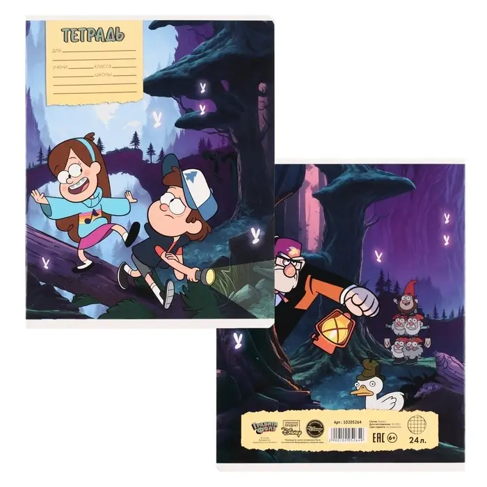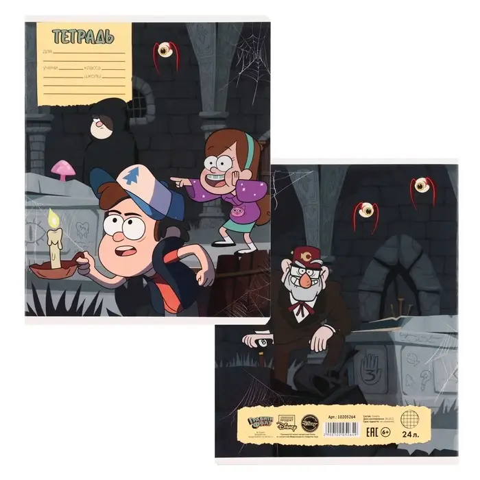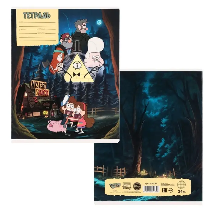 Тетрадь в клетку 24 листа, 5 видов МИКС, обложка мелованный картон, «Гравити Фолз»