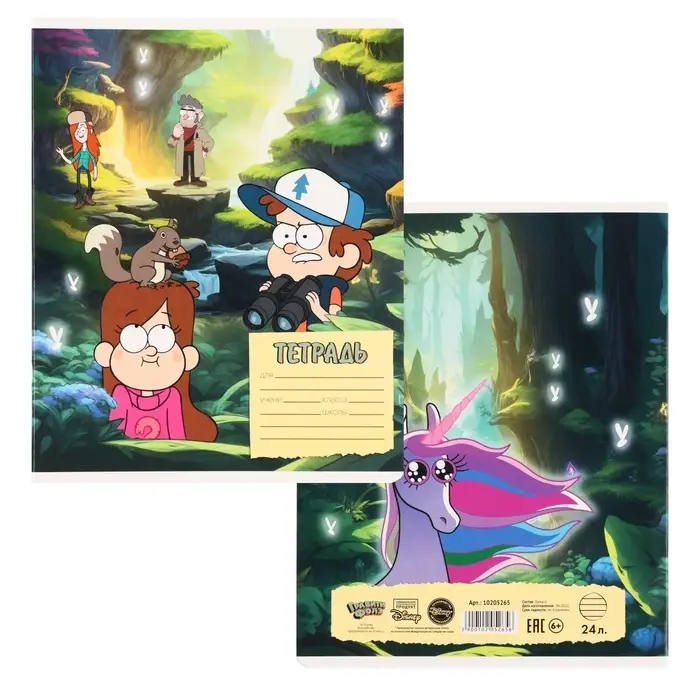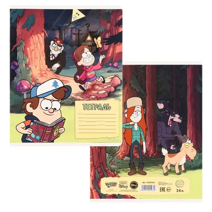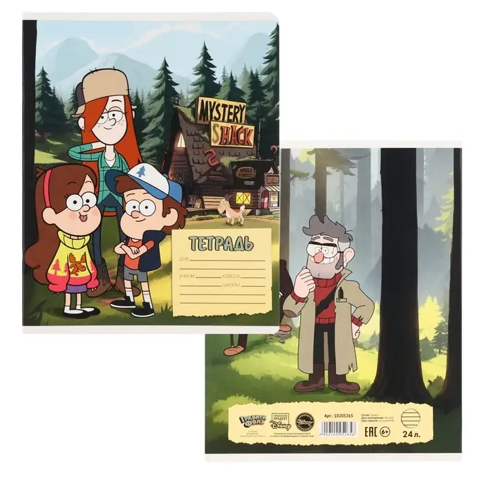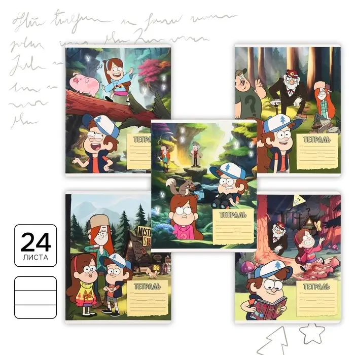 Тетрадь в линейку 24 листа, 5 видов МИКС, обложка мелованный картон, «Гравити Фолз»