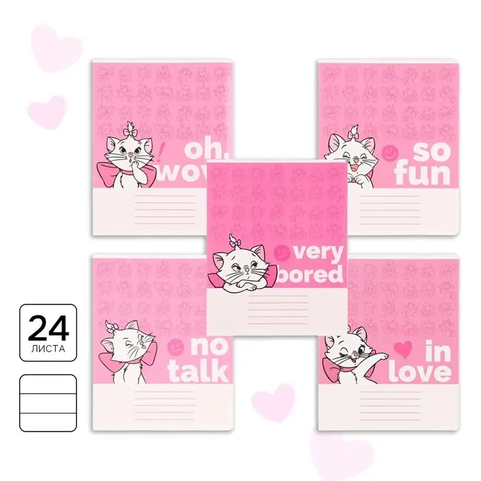 Тетрадь в линейку 24 листа, 5 видов МИКС, обложка мелованный картон, «Коты аристократы»