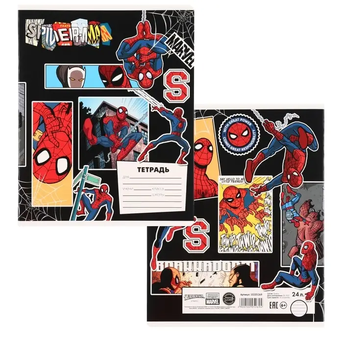 Тетрадь в линейку 24 листа, 5 видов МИКС, обложка мелованный картон, «Человек-паук»