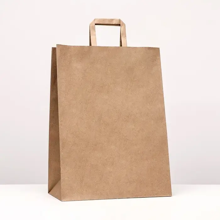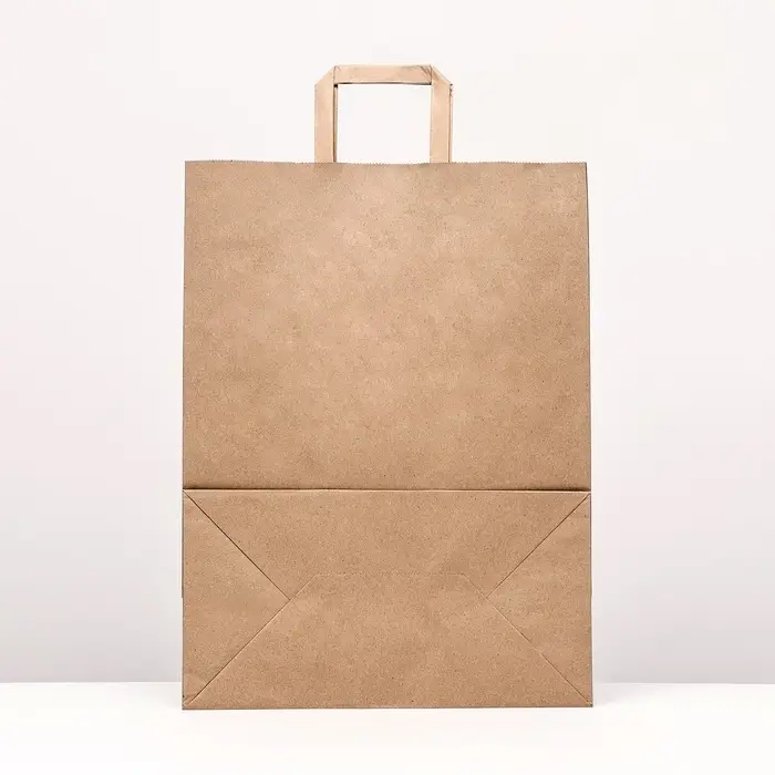 Пакет бумажный, плоская ручка крафт 32×17×43 см, 90 г/м²