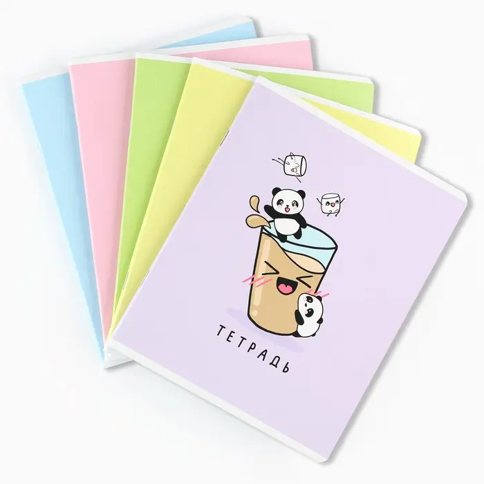 Тетрадь в клетку, 48 л., А5, на скрепке, блок №1 «Панды» МИКС