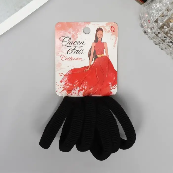 Резинка для волос "Вивьен" (набор 6 шт) тайна, 4 см, чёрный
